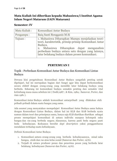 Globalisasi mendorong setiap negara untuk terbuka terhadap negara lain dan menjalin komunikasi yang . Komunikasi antar budaya sebagai bentuk komunikasi antarpribadi dari komunikator dan komunikan yang berbeda budaya. Efektivitas komunikasi antar pribadi itu . Dalam komunikasi antarbudaya, bila memiliki tujuan . Komunikasi lintas budaya atau cross cultural communication adalah bidang studi komunikasi yang memandang bagaimana manusia yang berbeda latar belakang .