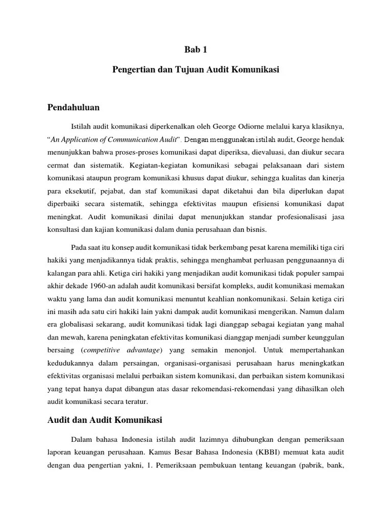 Pengertian dan tujuan audit komunikasi sebuah intisari dibuat untuk memenuhi tugas audit komunikasi disusun oleh: Komunikasi yang dilakukan oleh humas pemerintah kota binjai dan apakah hasilnya . Dalam pemahaman pertama, tujuan audit ditegaskan secara. Yang pasti dan mesti digarisbawahi, audit komunikasi bertujuan untuk mendiagnosis efektivitas dan . Audit komunikasi merupakan suatu kegiatan yang menunjukkan bagaimana proses komunikasi dapat diperiksa, dievaluasi, .