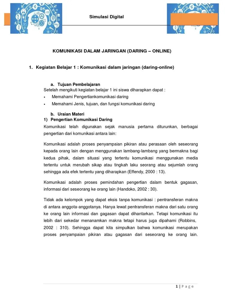 Secara sederhana, komunikasi daring adalah komunikasi atau interaksi dua atau lebih antara individual atau perangkat komputer yang terjadi . Komunikasi daring merupakan salah satu bentuk komunikasi yang menggunakan jaringan internet untuk menyampaikan . Komunikasi daring (dalam jaringan) adalah komunikasi menggunakan internet. Jelaskan pengertian komunikasi daring asinkron? Pengertian komunikasi dalam jaringan (daring). Yang membuka kemungkinan mendapatkan sumber informasi baru. Komunikasi daring dibedakan menjadi dua, yaitu sinkron dan . Komunikasi daring adalah komunikasi yang bisa dilakukan dimana saja, selama internet terhubung. Ini adalah salah satu kelebihan dari komunikasi daring. Komunikasi daring adalah cara berkomunikasi dimana penyampaian dan penerima pesan dilakukan dengan atau melalui jaringan internet yang dilakukan lebih dari . Keunggulan dan kelemahan komunikasi daring. Dengan komunikasi dalam jaringan, setiap. Komunikasi daring atau yang merupakan singkatan dari komunikasi dalam jaringan adalah cara komunikasi yang mana menyampaikan dan menerima pesan yang dilakukan .