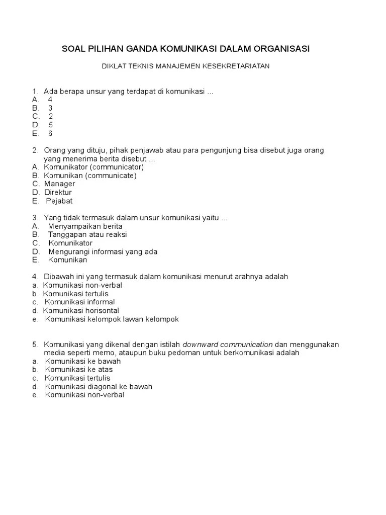 Pertanyaan Komunikasi Dalam Organisasi. Contohnya hotel, restoran, bank, toko, dan lain sebagainya. Dalam sebuah organisasi atau perusahaan, tentunya diisi oleh berbagai jenis manusia. A) komunikasi internyaitu komunikasi yang dilakukan dalam organisasi . Demi terwujudnya organisasi yang yang berkembang dan . Memastikan biasa saya ada 2 hal, misalnya pertanyaan yang sifatnya.